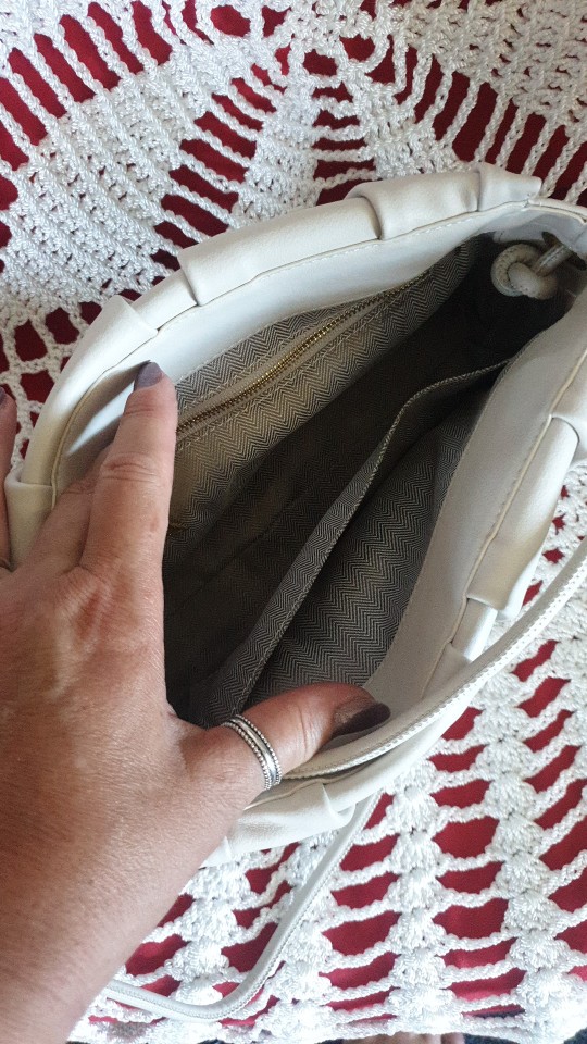 Beautiful, quality handbag. The color, however, is not pure white, with a grayish shade. But it's not tragic. Thank you!
