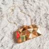 Nice handbag. Inside, one small compartment for phone, money, keys, mirrors. The bag can be worn on a chain or in the hand as a clutch.