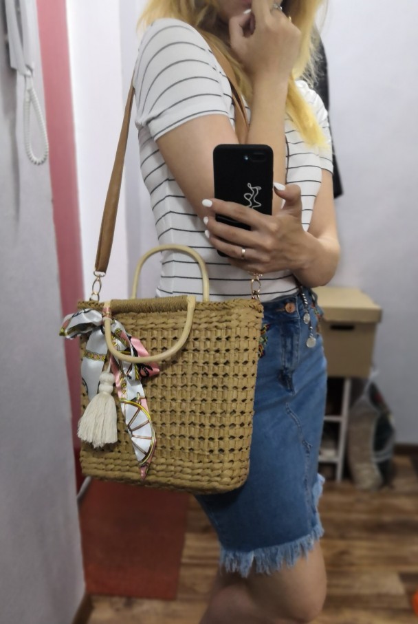 The bag is cool. Natural straw, the handbag is closed by tightening the cord. Everything was very quickly packed perfectly: nothing was wrinkled and not broken. Put a small gift (some ribbon). Description corresponds. Seller, definitel recommended