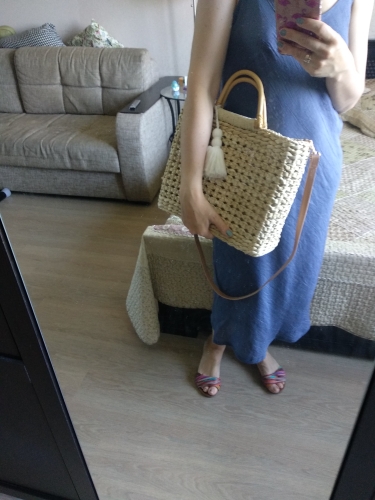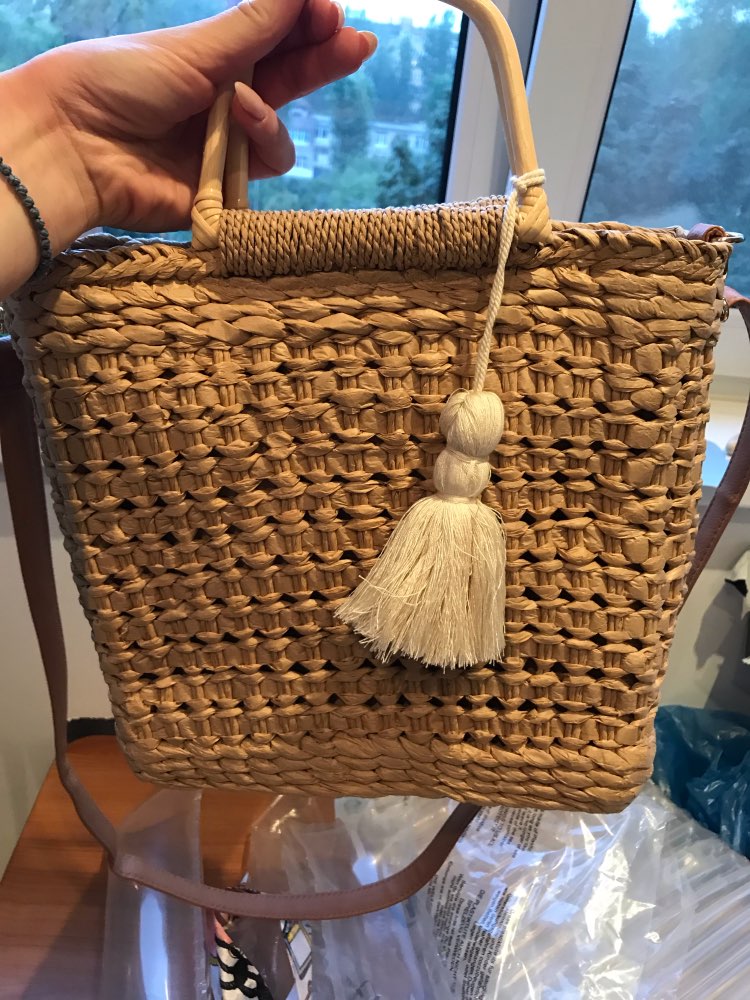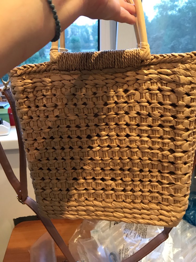 The bag came very quickly to Russia, 10 days before mo. I thought it would be made of more solid material, but it is woven from leaves that touch something like paper. On the one hand it is good, because solid straw would cling and spoil clothes, on the other-with such a bag under the rain, it is likely not worth it.