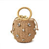 Buy this beautiful handwoven straw raffia rope bucket handbag, choose the one you like, with crystal rhinestones or with simulated pearls, we promise you will want to wear it all summer long!