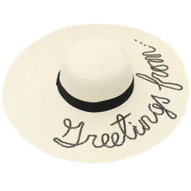 Sequin Straw Floppy Hat Greetings From