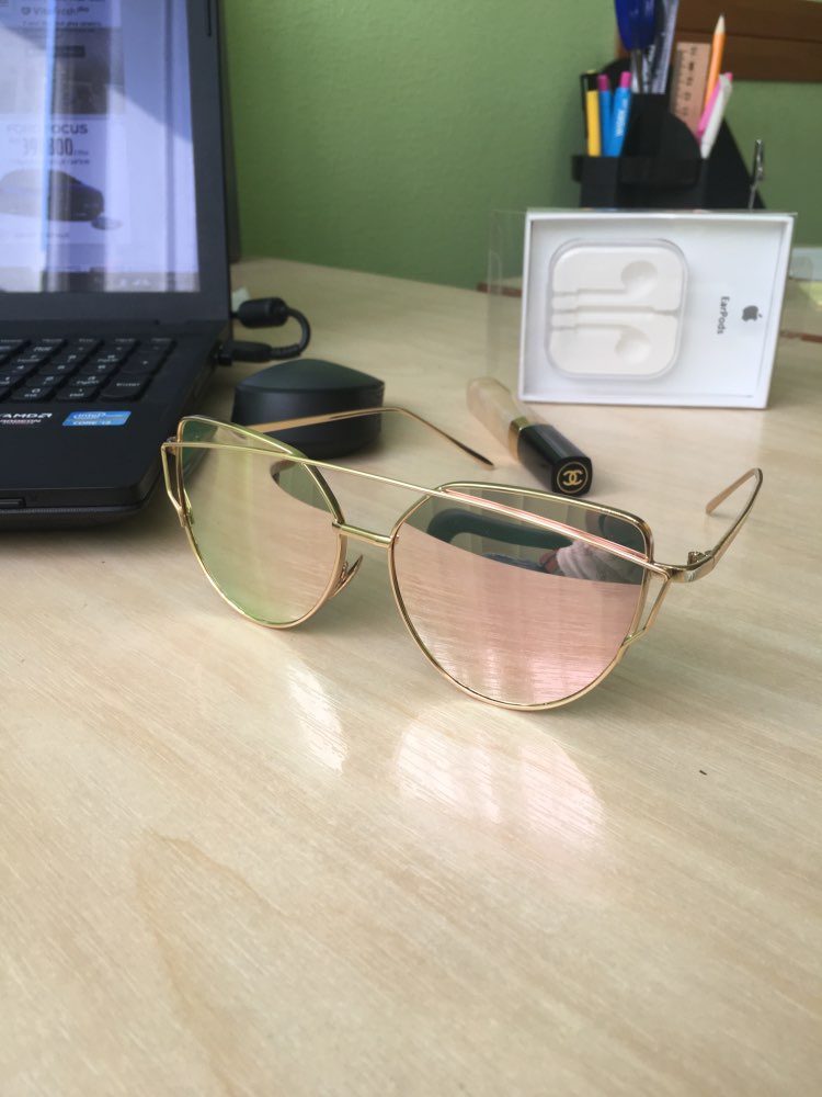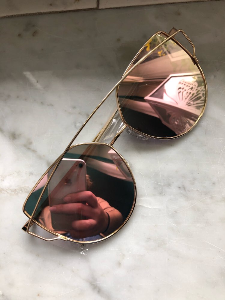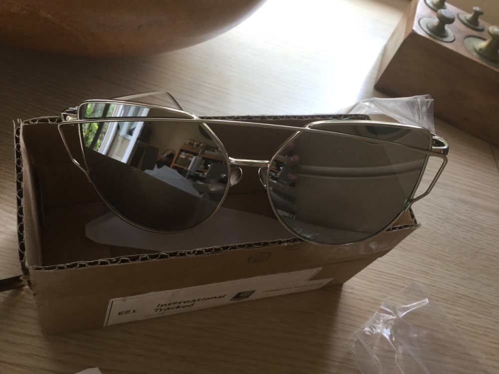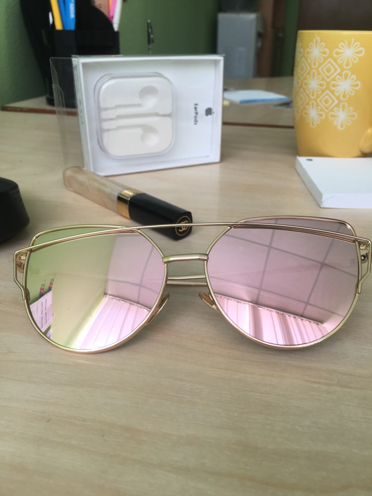 Love these sunglasses!! They're super cute and a great price. Took awhile to get here but awhile to get here, but it was worth it. Got the rose gold lenses with the gold frames. They came in a great box for protection as well as in a plastic cover for transport.