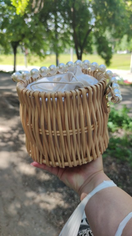This is a very beautiful handbag, complete with a long chain heavy and something like a decorative scarf. Came with a bunch of inflatable protection. Take definitely