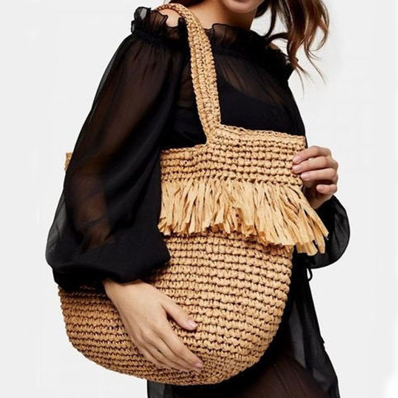 Fringed Handwoven Beach Bag Straw Raffia