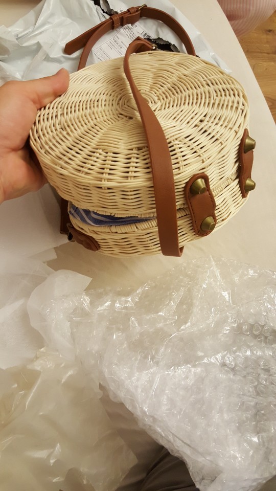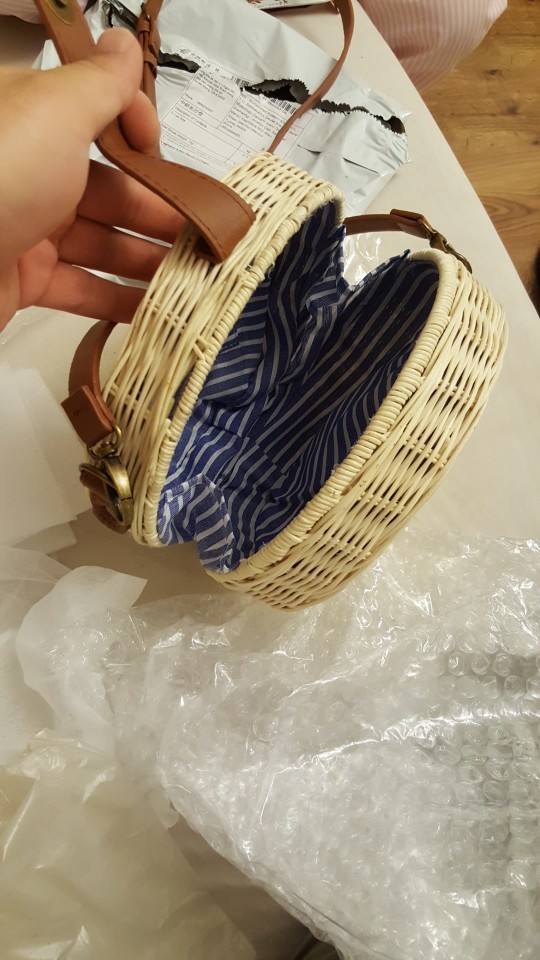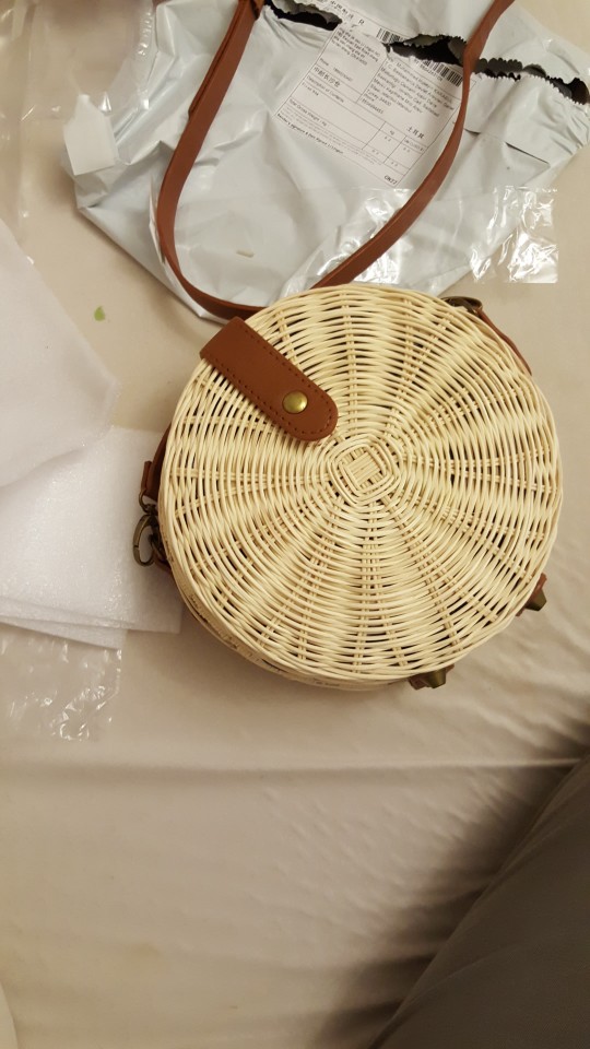 Ordered 15 jun, came in Almaty 2 Aug. Bag like the description, straw, inside lining fabric. But does not close tightly, afraid of small things.